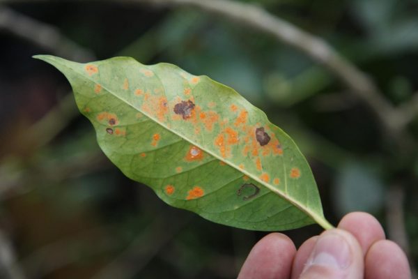 Do vi nấm Hemileia growatrix gây ra, bệnh có tên gọi là màu nâu nhạt và có bột của nấm, trông giống như gỉ sắt. Một khi bị nhiễm nấm, cây cuối cùng sẽ mất hết lá cũng như khả năng sản xuất cà phê và dần dần suy kiệt dẫn đến cái chết hàng loạt. Bệnh gỉ sắt là một dịch bệnh rất dễ lây lan từ cây này sang cây khác, từ đồn điền này sang đồn điền khác nếu không kiểm soát và ngăn chặn kịp thời. So với cây cà phê Arabica, cây Liberica cứng hơn, vì nó thích nghi với khí hậu nóng, chống chịu sâu bệnh và có thể phát triển ở độ cao thấp.