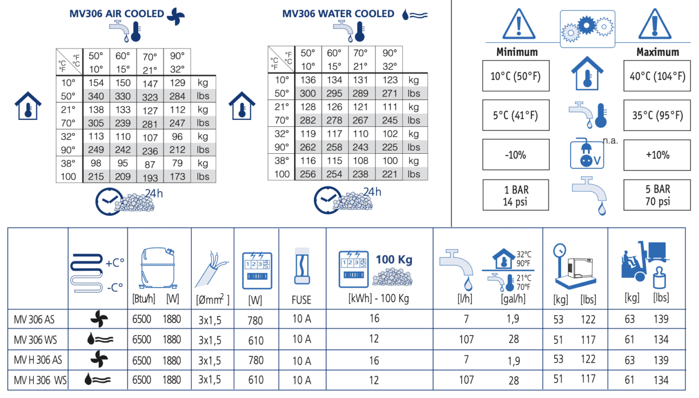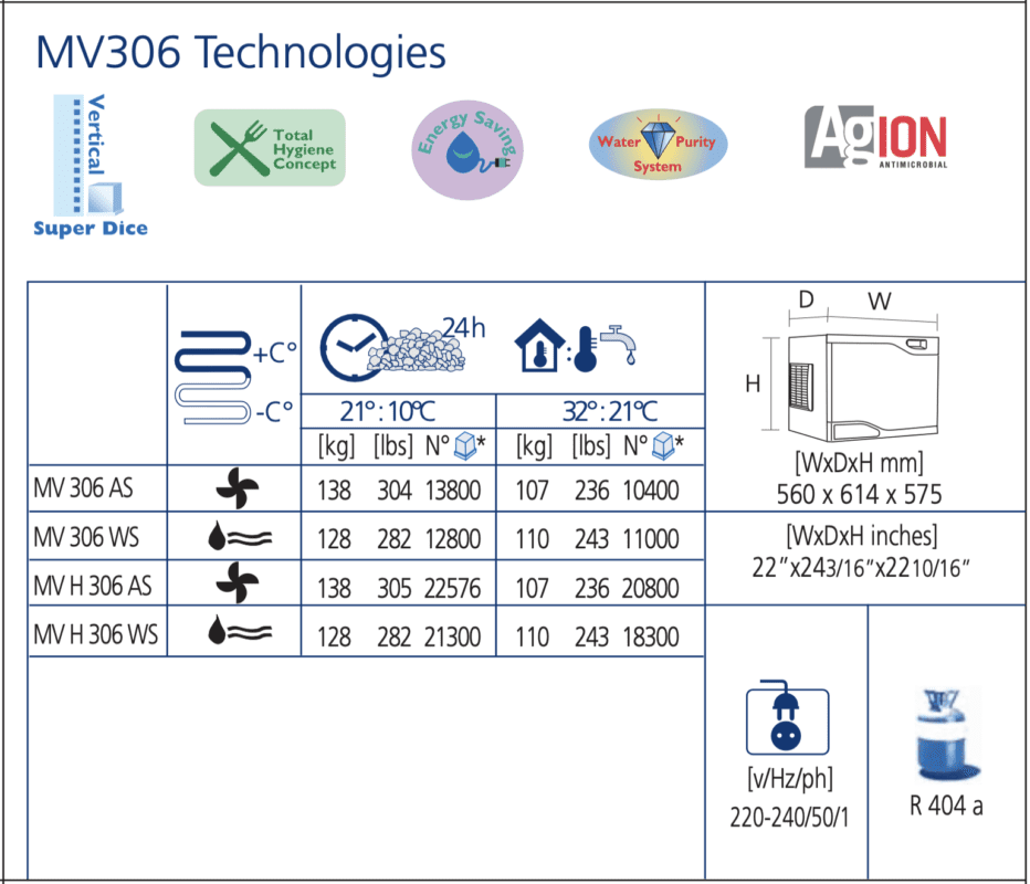 • Sản xuất tới 154kg (340 lbs) đá mỗi ngày.