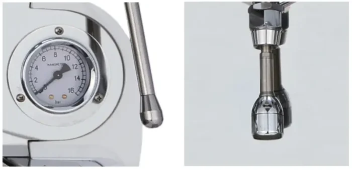 Tác động vật lý: Thay vì nhấn nút, Barista sẽ kéo cần gạt xuống để nén lò xo khổng lồ bên trong họng pha.