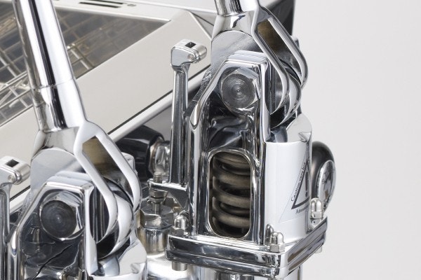 Mỗi Grouphead của Valchiria được trang bị hệ thống lò xo kép mạnh mẽ. Khi Barista kéo cần gạt, lò xo sẽ được nén lại. Khi thả ra, lò xo sẽ tự động đẩy nước qua bánh cà phê với áp suất giảm dần (từ khoảng 11 bar xuống 0 bar).