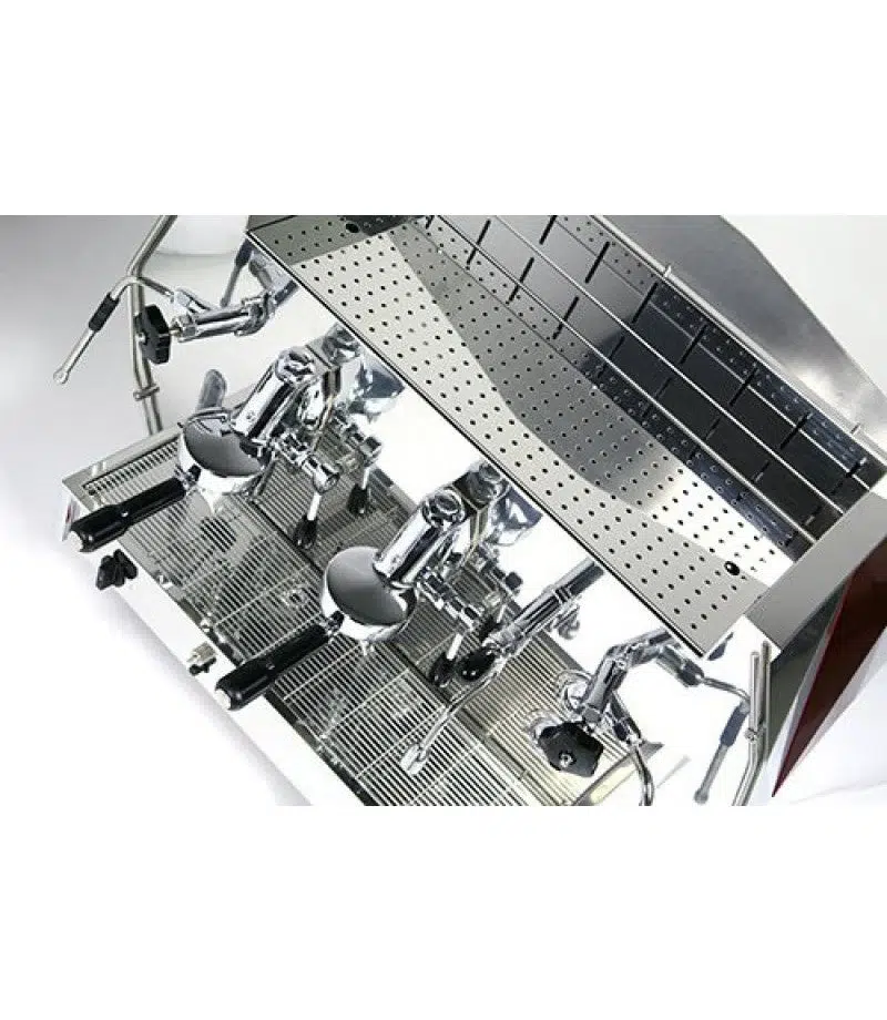 Máy pha cà phê Dimante có các bộ phận bằng đồng thau mạ crôm với buồng pha, 2 vòi hơi xoay, vòi rót linh hoạt, kính quan sát trong suốt, khay hâm nóng và chân đế nâng cao. Được sản xuất dành cho quán cà phê, máy này đạt chứng nhận ETL và có công tắc nguồn 2 vị trí cho phép hoạt động ở mức 3/4 công suất trong giờ thấp điểm.