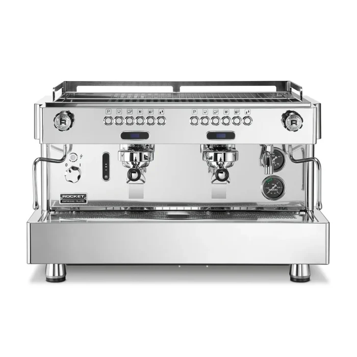 Toàn bộ thân máy được chế tác từ thép không gỉ AISI 304 – loại thép chuyên dùng trong ngành thực phẩm với khả năng chống ăn mòn và giữ độ bóng tuyệt đối. Rocket không sử dụng các tấm ốp nhựa rẻ tiền; mọi chi tiết từ khay nước đến bảng điều khiển đều mang lại cảm giác kim loại chắc chắn, sang trọng.