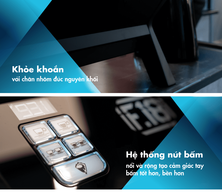 F18 có thiết kế khay pha chế rộng rãi, điều chỉnh được 2 cao độ phù hợp với bản cốc thấp và cốc cao. Ngoài ra, khu vực làm việc chính của máy cũng được trang bị thêm hệ thống đèn LED giúp Barista thao tác dễ dàng, chính xác ngay cả trong điều kiện môi trường thiếu ánh sáng.