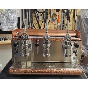 Cấu hình 3 group tạo nên một sự hiện diện bề thế và cân đối trên quầy bar. Phía trên mỗi group là những chiếc cần gạt dài, chắc chắn. Khi Barista kéo cần gạt xuống, toàn bộ quy trình cơ khí bên trong bắt đầu chuyển động, tạo nên một màn trình diễn thị giác đầy lôi cuốn đối với thực khách.