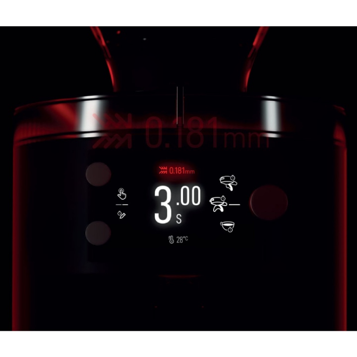 Một trong những điểm nhấn về thiết kế là màn hình màu cao cấp (88.3mm) với góc nhìn rộng. Giao diện người dùng được thiết kế trực quan, cho phép Barista cài đặt thời gian xay, theo dõi nhiệt độ lưỡi xay và quản lý dữ liệu vận hành chỉ với một vài thao tác chạm hoặc xoay nút điều hướng.