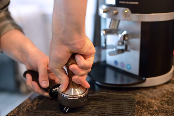 Nhiều bạn vẫn có thói quen gõ tay nén vào thành basket để bột cà phê xung quanh thành basket rớt xuống sau khi nén. Tuy nhiên, thao tác này không chỉ làm mẻ cục nén mà còn trầy luôn cả tay pha gây hao phí dụng cụ.